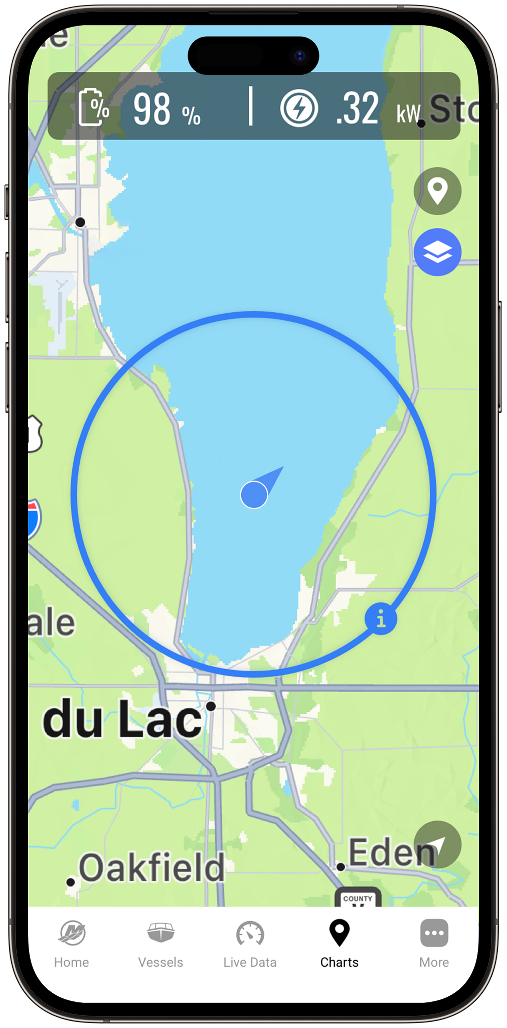 With the SmartCraft Connect module, you can unlock advanced features available through the Mercury Marine app, such as a GPS map with visualised range estimates and other features for planning your outing.